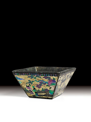 Gold lacquer square cup with inlaid mother-of-pearl design of figures in landscape Qing Dynasty (1644-1911) |