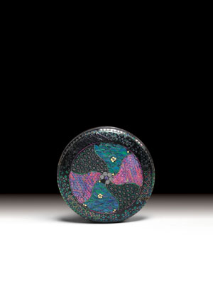 Black lacquer round box with inlaid mother-of-pearl design of geometric patterns Qing Dynasty (1644-1911) |