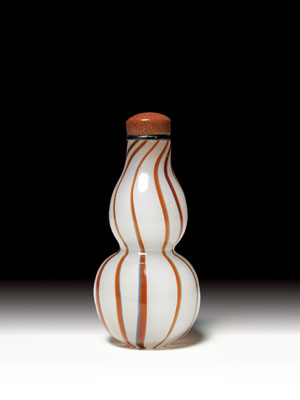 Twisted colours over white glass snuff bottle in double-gourd shape Daoguang/ Xianfeng (mid 19th century) |