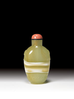 Sandwiched glass imitating agate snuff bottle Jiaqing/ Daoguang (early 19th century) |